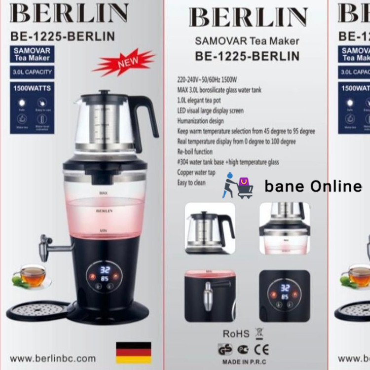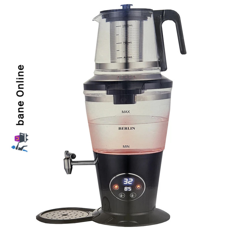 شرکت برلین یکی از برند های مطرح اروپایی می باشد این سماور 3 لیتری و پیرکس کامل می باشد و دارای المنت اروپایی و شیشه پیرکس ان ضد شوک حرارتی می باشد و دارای ترموستات قطع کننده هنگام نبود آب و جوشاندن کامل می باشد و دارای ریز جوش نیز می باشد.