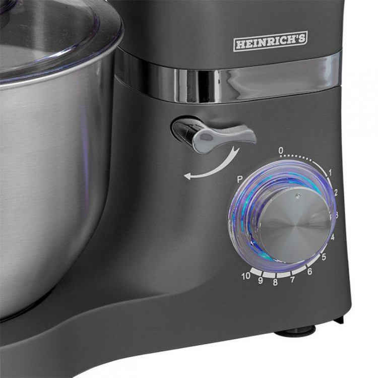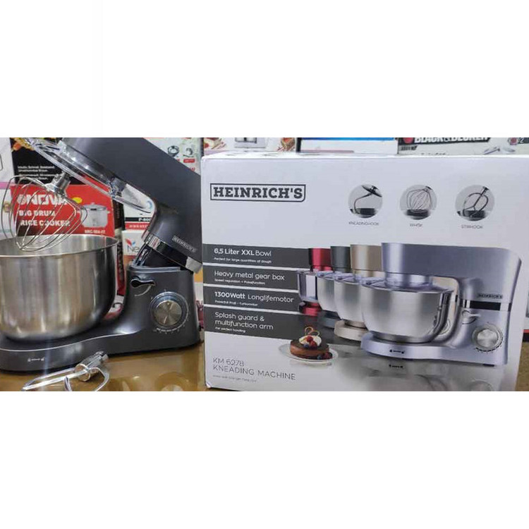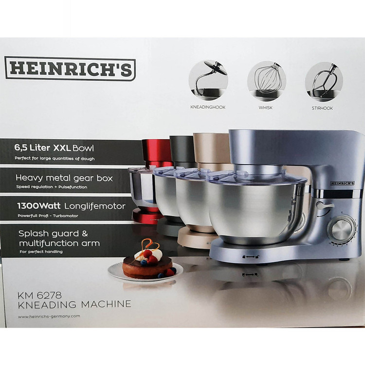 همزن کاسهدار حرفهای هنریچ مدل km 6278، همه کار و زحمت پخت و پز و تهیه کیک و شیرینی، تهیه خامه و سسها و دیگر ترکیبات غذایی، به هم زدن مواد به صورت حرفهای مربوط میشود. اینکه یک وسیله خوب، همه این کارها را بر عهده گیرد، بسیار لذت بخش است و کار شما فقط تعیین کردن حجم و اندازهی مواد خواهد بود. هم زدن و میکس مواد را به یک دستگاه همزن خوب بسپارید هنریچ این اطمینان خاطر را به شما خواهد داد که نسبت به کیفیت کار مطمئن باشید که کارگری چابک کارها را انجام میدهد و میتوانید مثل یک کارفرما برخورد کنید. دستگاه همزن هنریچ یک نتیجە عالی از تهیە مواد اولیە دستوالعملهای پخت را فراهم میسازد. همزن کاسهدار هنریچ یک کاسه با ظرفیت 6 لیتر دارد و در هر مرحله سه تا چهار کیلو از خمیر یا خامه یا مایه سسها را فراهم میسازد، جنس این کاسه فلزی بوده و بر روی آن درپوشی قرار میگیرد که از پاشیدن مواد در حین هم زدن بر روی سطوح ممانعت میکند. این درپوش شفاف یک منفذ برای افزودن مواد دارد.