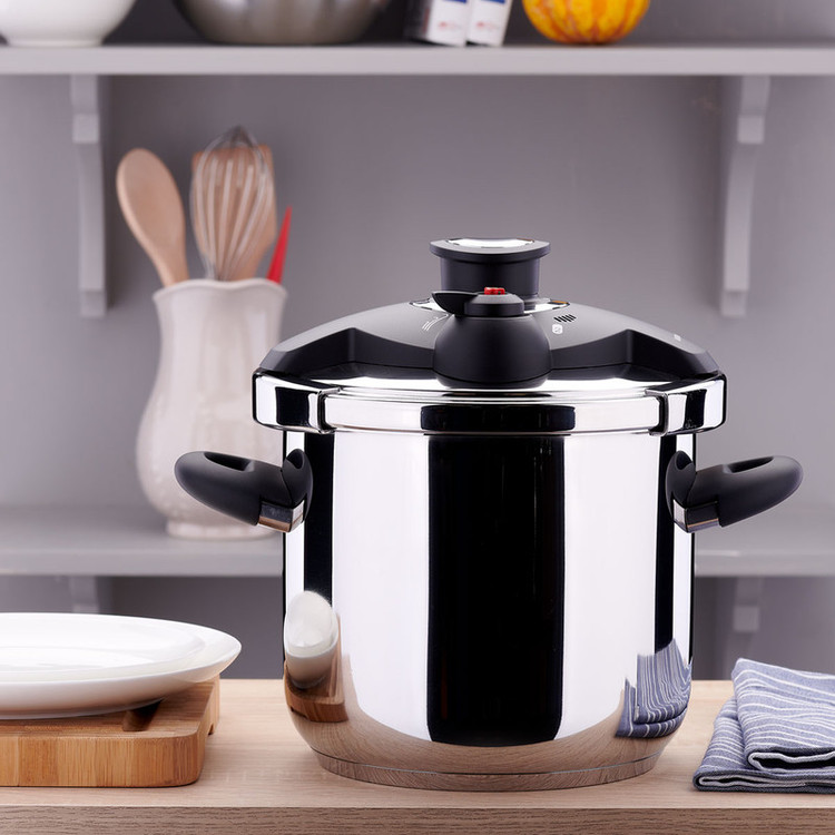 زودپز کرکماز مدل بِلا A174 با ظرفیت 7 لیتر یکی از محصولات با کیفیت برند کرکماز ترکیه است. این وسیله با کاربردی ساده می تواند به کاربران کمک کند تا در کمترین زمان ممکن مواد غذایی را با بهترین کیفیت آماده نمایند. جنس بدنه ی زودپز کرکماز مدل Bella A 174 از استیل ضد زنگ (18/10) ساخته شده که این نوع استیل دارای 18درصد کروم و 10 درصد نیکل است که به استجکام، دوام بیشتر و زیبایی بدنه ی این محصول در برابر ضربه و خراشیدگی کمک می کند. کف این زودپز به صورت کپسول آلومینیومی ساخته شده که سبب می شود تا حرارت و گرما به صورت یکنواخت در تمام سطح زودپز پخش گردد و مواد داخل آن به صورت کامل و در یک زمان پخته شوند. جنس دستگیره های زودپز Korkmaz Bella A174 از سیلیکون ساخته شده و دارای مقاومت بالایی در برابر حرارت و گرما است. همچنین با طراحی آرگونومیکی که درب و دستگیره ها دارد از سوزاندن دست جلوگیری کرده و شما می توانید با یک دست به راحتی درب آن را باز و بسته نمایید. زودپز روگازی مدل بِلا A174 کرکماز دارای پایه ی القایی بوده که برای انواع اجاق های القایی، گازی، برقی و هالوژنی مناسب می باشد. این مدل زودپز دارای عملکرد فشار دو مرحله ای در هنگام پخت مواد غذایی می باشد. جنس درب این محصول از استیل ضد زنگ می باشد و دارای 2 عدد سیستم قفل ایمنی با عملکردهای متفاوت است. قفل ایمنی زودپز کرکماز هوشمند بوده و تا زمانی که بخار داخل زودپز به صورت کامل تخلیه نشده مانع باز شدن درب آن می شود که به کاربران این امکان را می هد تا با اطمینان بیشتری از آن استفاده نمایند. کاربر می تواند برای شستشوی این زودپز از ماشین ظرفشویی استفاده کنند.