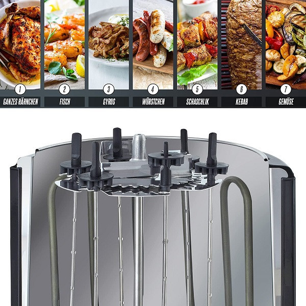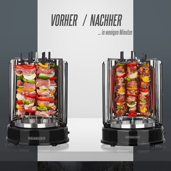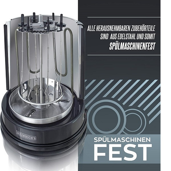 به لطف المنتهای حرارتی این دنرساز حرفه ای هنریچ، می توان یک مرغ کامل را در عرض 50 دقیقه آماده سرو نمود. دنرساز هنریچ 8687 مجهز به 6 عدد سیخ می باشد. سیخ از جنس استیل ضد زنگ است که در مقابل ضربه و همچنین زنگ زدگی بسیار مقاوم است. این سیخ ها براحتی قابل جدا شدن هستن و می توان آنها را با دست و یا در ماشین ظرفشویی شسشتو داد. شایان ذکر است که قطعات گوشت سیغ شده در عرض 30 تا 30 دقیقه به صورت کامل آماده سرو شدن خواهند بود. دنساز یا همان کباب ترکی ساز هنریچ 8687 مجهز به یک سیغ بزرگ مخصوص مرغ کامل یا همان جوجه کامل می باشد. به لطف المنت های حرارتی بسیار بهینه تعبیه شده در آن، مرغ کامل قرار داده شده روی این سیخ گردان بزرگ در عرض 50 دقیقه آماده سرو شدن خواهد بود. بدنه دنرساز 8687 هنریچ از استیل ضد زنگ طراحی و ساخته شده است که علاوه بر زیبا بودن، متناسب با آشپزخانه های امروزی نیز است. همچنین استیل ضد زنگ به کار برده شده در بدنه علاوه بر مقاوم بودن در برابر ضربه، ضد زنگ بوده و در مقابل رطوبت نیز بسیار مقاوم است.