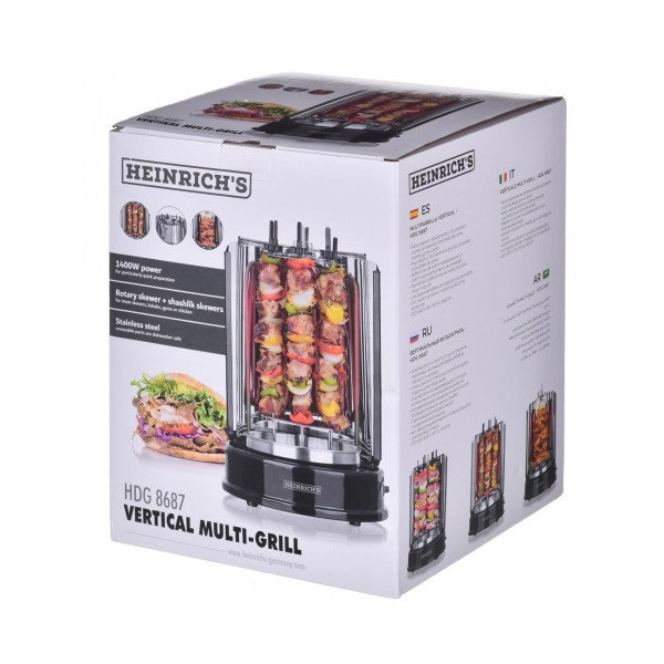 مدل : HDG 8687 کشور سازنده : آلمان کمپانی سازنده : هنریچ توان مصرفی : 1400 وات تعداد سیخ : 6عدد سیخ جوجه گردان : دارد جنس بدنه : استیل ضد زنگ قطعات تمام استیل با قابلیت جدا شدن